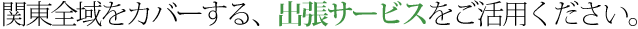 出張サービス提供エリアは、東京都、埼玉県、神奈川県、千葉県、茨城県、栃木県、群馬県となります。その他、地域につきましてはお気軽にご相談ください。