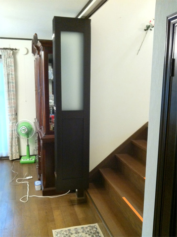 階段のあるリビングとダイニングの間にアズウッドで間仕切りさせて頂きました。
