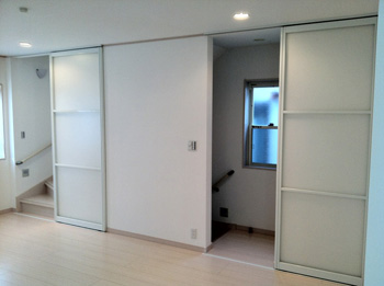 リビングの階段入口をプレイスFX引戸で間仕切りさせて頂きました。