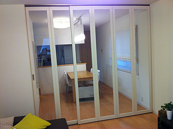 透明のパネルを使用することで、閉めていても圧迫感のない従来通りの解放感のある部屋として使用出来ます。