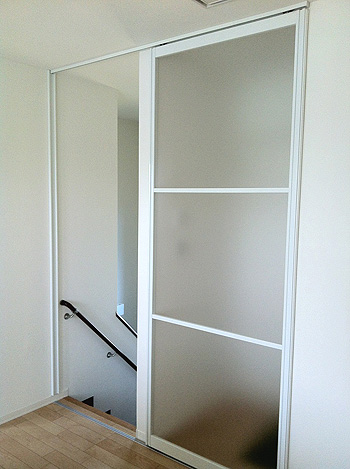 階段の間口にプレイスFX引戸で間仕切りさせて頂きました。 リビングと階段に戸がない為、冷暖房効率が良くありませんでした。 引戸を付けることで飛躍的に効率良くなりました。